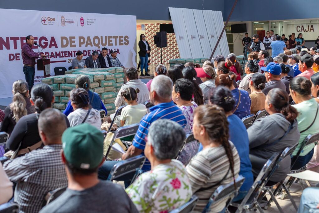 - Fue en el patio principal de la Presidencia de Guadalupe que se reunieron 450 familias para recibir materiales de construcción.