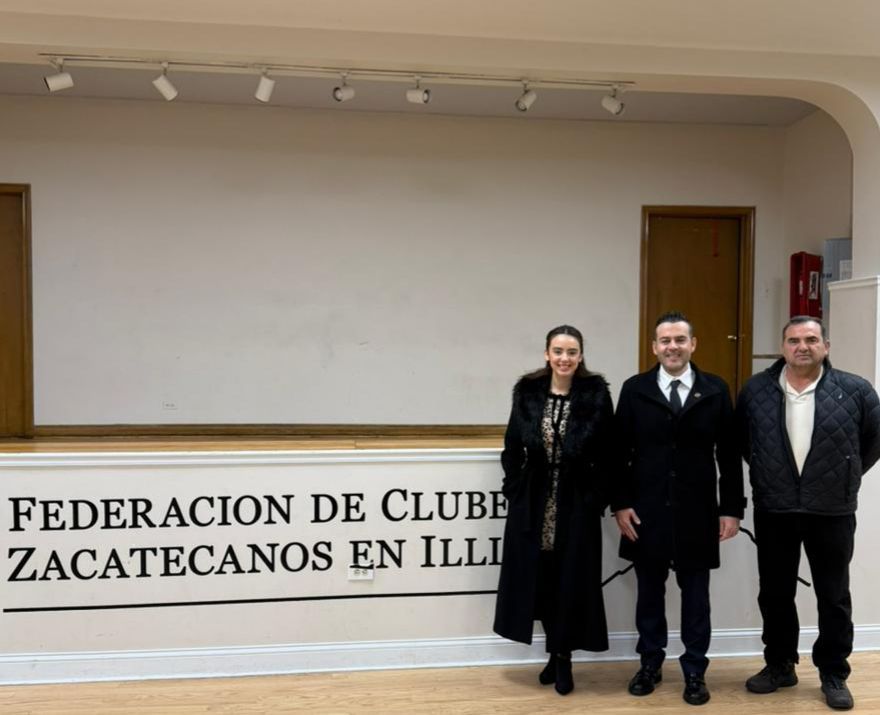 Illinois, EE. UU.— El diputado federal Ulises Mejía Haro sostuvo encuentros con representantes de tres federaciones de zacatecanos radicados en el estado de Illinois, Estados Unidos: Jaime Polanco, presidente de la Federación Unidos por Zacatecas; Toño Ávila, de Zacatecas sin Fronteras; y Alondra Hernández, de la Federación de Clubes Unidos Zacatecanos.