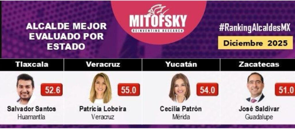 En la publicación por parte de Mitofsky, llamada “Ranking Alcaldes Mx”, el zacatecano lidera a todos los presidentes municipales de su entidad con una aprobación superior al 51 por ciento.