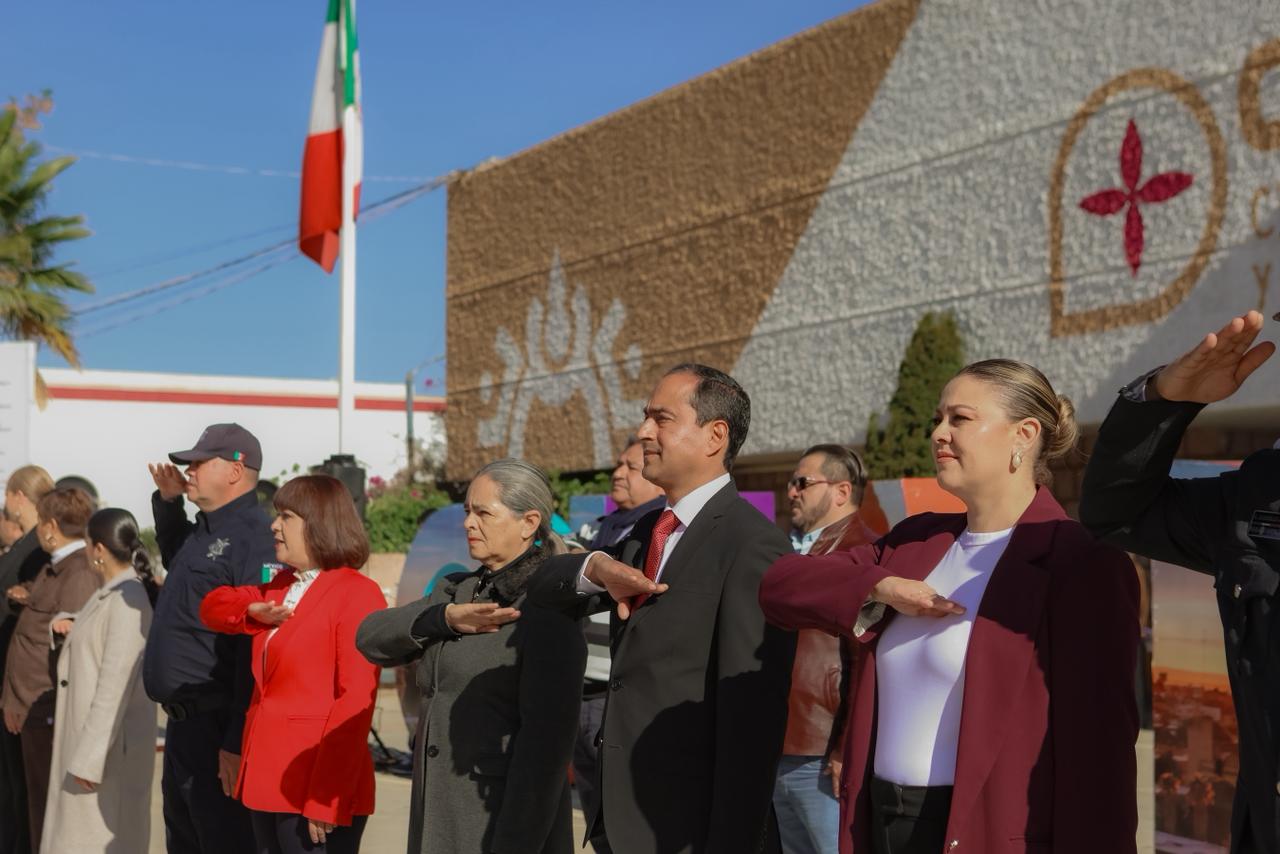 “Hoy, frente a nuestra bandera, renovemos el compromiso de servir con honestidad, de actuar con responsabilidad y de mantener vivos los valores cívicos que nos dan cohesión como pueblo mexicano”, enfatizó el mandatario municipal.